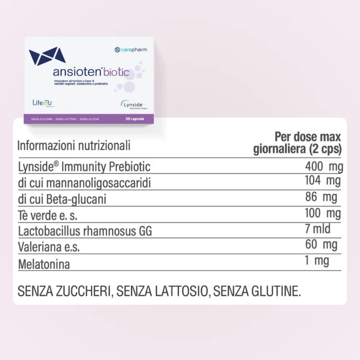 La connessione tra cervello e intestino è ormai scientificamente riconosciuta. Ansioten Biotic combina probiotici ed estratti vegetali in un’unica formulazione pensata per sostenere entrambi: l’equilibrio mentale e la salute intestinale. Un approccio integrato per chi cerca serenità, equilibrio e sonno di qualità.