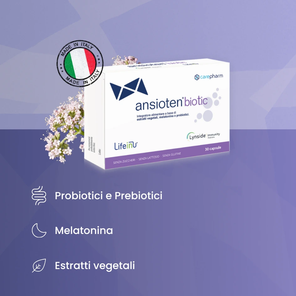 Stress, agitazione e disturbi del sonno non colpiscono solo la mente. Anche l’intestino risponde, alterando il suo equilibrio. Ansioten Biotic nasce per supportare il benessere psicofisico, agendo su entrambi i fronti: mentale e gastrointestinale.